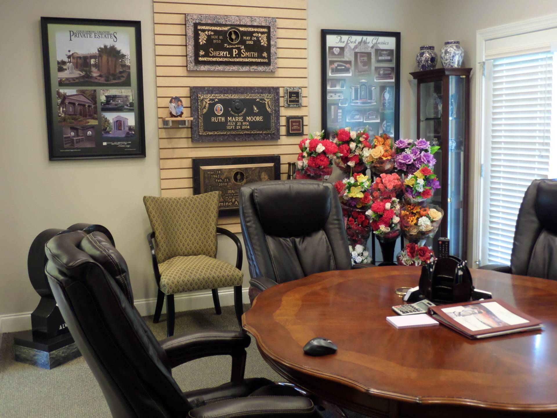 Our office was built in 2012 to accommodate the needs of our families and friends in a comfortable and peaceful way. You are always welcome to come to the office at any time to inquire about services, locate a gravesite or say hello.